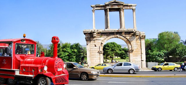 Athens Happy Train at the Handrian Arch
